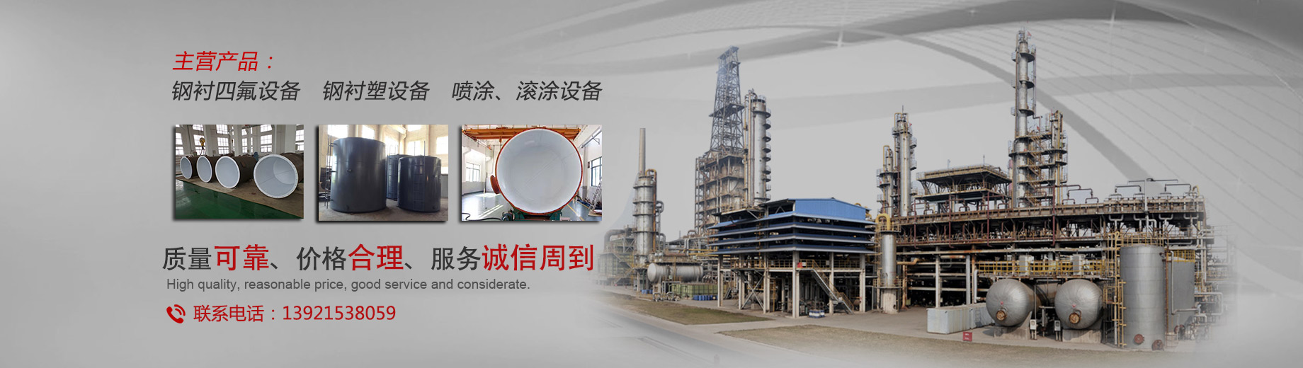 我公司專業(yè)生產(chǎn)防腐設備,主要產(chǎn)品有:鋼襯四氟、鋼襯四氟儲罐、反應釜內(nèi)襯四氟、鋼襯四氟管道,四氟換熱器、PTFE襯里設備、鋼襯塑儲罐、鋼襯塑管道、攪拌槳等等。產(chǎn)品可應用于化工、氯堿、海水淡化、印染、顏料、儲運、電廠、稀土、冶金、電子、制藥、釀造等行業(yè)...